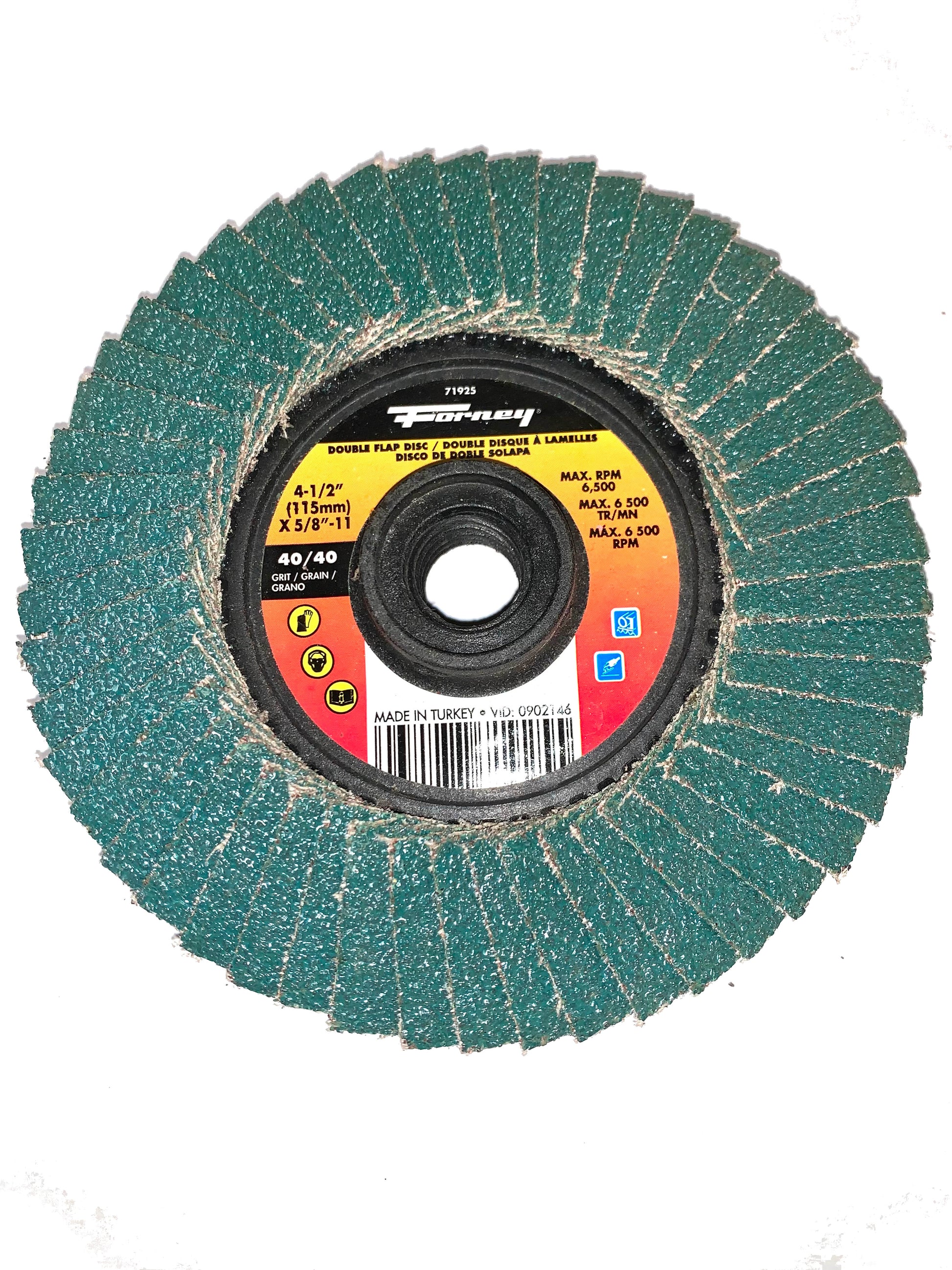 - Double-sided flap discs are welded to a plastic spin-on 5/8"-11 center which allow you to keep the job moving with ease